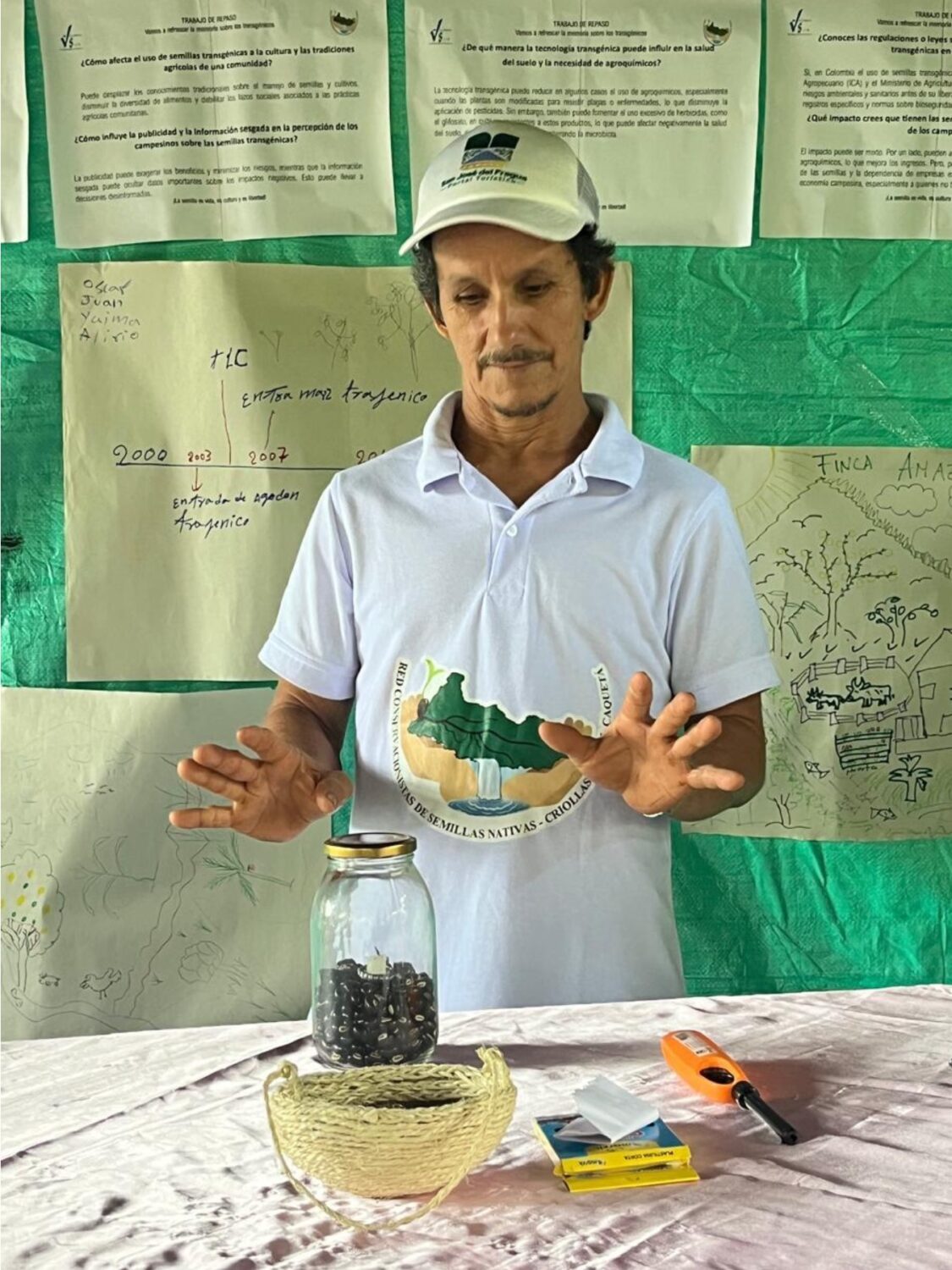Der Biss der längsten und größten Schlange der Welt war nicht das Ende für Juan Ospina. Er, ein Überlebender, der vom Gift der gefürchteten „Verrugosa“ gezeichnet ist, ist ein Hüter der Erde, ein Saatgut-Naturschützer, der mit Überzeugung behauptet: „Das Erbe einer Familie sind ihre Samen”, und der von Vicaría del Sur geförderte Austausch von Samen und Erfahrungen lässt ihn verstehen, dass „wir früher für die Ernährungssicherheit gearbeitet haben, dann für die Ernährungssouveränität und jetzt für die Autonomie, frei entscheiden zu können, was wir essen und anbauen”. Deshalb sind es Samen, die wandern.
