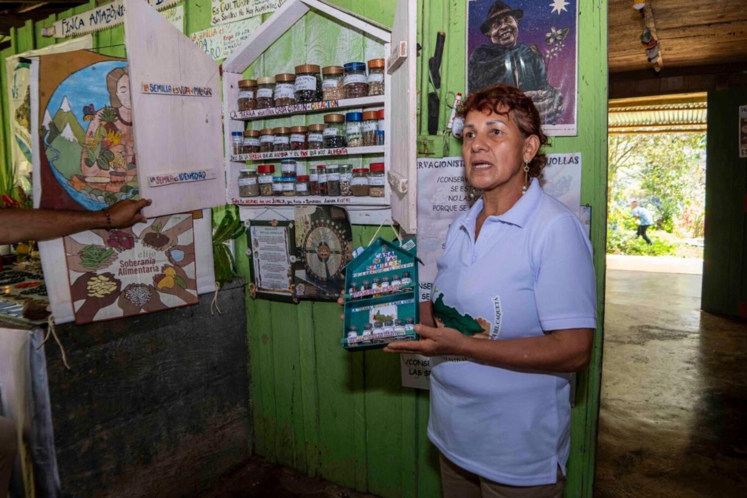 Die Familie von Buen Vivir hat einen Altar für das Saatgut und ein „Holzhäuschen“, in dem man, wenn man die Türen öffnet, Glasgefäße mit verschiedenen Farben, Texturen und Formen sieht. Es ist eine unschätzbare Sammlung zur Erhaltung des Lebens. „Darin liegt das Leben, unser Leben und auch das der kommenden Generationen”, erklärt Marleny. „In Zeiten der Knappheit, der Pandemie, der Straßensperren hat unsere Farm Nahrung hervorgebracht (…) Pflegen, ernten und teilen ist der größte Reichtum, den ein Bauer hat”, sagt Marleny.